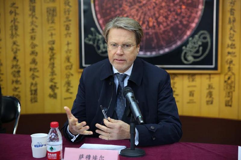 座谈会上,北京天文馆副馆长齐锐首先向与会来宾详细介绍了玑衡抚辰仪1:1复制项目进展情况。随后,双方就玑衡抚辰仪复制、刘松龄相关研究及展览等未来合作事项进行交流。日博加尔表示,由斯洛文尼亚传教士刘松龄设计监制的玑衡抚辰仪是中斯双边科技交流的重要成果,是两国长久友谊的重要历史见证。感谢北科院和北京天文馆将古天文仪器保存得如此完好,能够让我们在几百年后一睹当年精湛技艺的风采。同时感谢中方在玑衡抚辰仪复制过程中付出的努力,复制品完成后将作为中斯友好纪念碑安置在斯洛文尼亚国家档案馆前,在中斯建交30周年这一重要时刻,纪念两国源远流长的科技文化交流历史。真诚希望与中方继续加强以刘松龄相关研究及展览为代表的科技与文化等领域合作,续写中斯友好关系的新篇章。