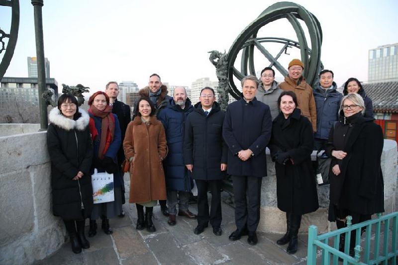 为推动复制及赠与工作进一步实施,1月19日下午,幸运彩(以下简称“北科院”)院长伍建民在北京古观象台接待斯洛文尼亚外交部国务秘书萨穆埃尔·日博加尔(Samuel Žbogar)、斯洛文尼亚驻华大使苏岚(Alenka Suhadonik)、斯洛文尼亚驻华使馆副馆长兼全权公使裴迪(Tadeja Forstner Perklic)、斯洛文尼亚外交部亚大司全权公使因戈利奇(Matjaž Ingolič)等,并进行交流座谈。北京天文馆馆长王晓锋主持座谈会。
