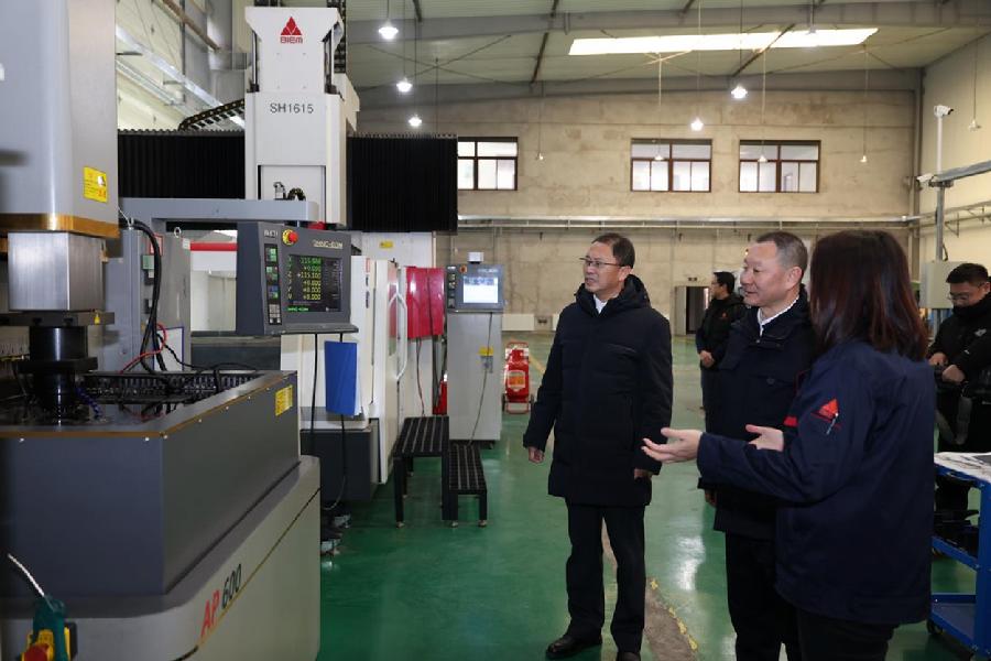 走访慰问结束后,伍建民带队实地调研北京市电加工研究所有限公司平谷基地,了解企业发展情况。北京市电加工研究所有限公司总经理郭建梅随行介绍。
