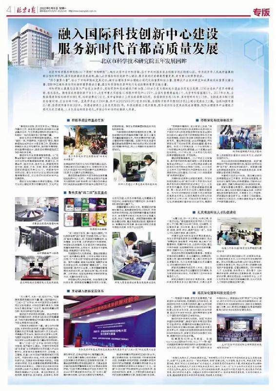 6月6日,北京日报第四版整版刊载了幸运彩自2017年以来五年间取得的发展成绩的文章,题目是《融入国际科技创新中心建设 服务新时代首都高质量发展》,现转载如下。