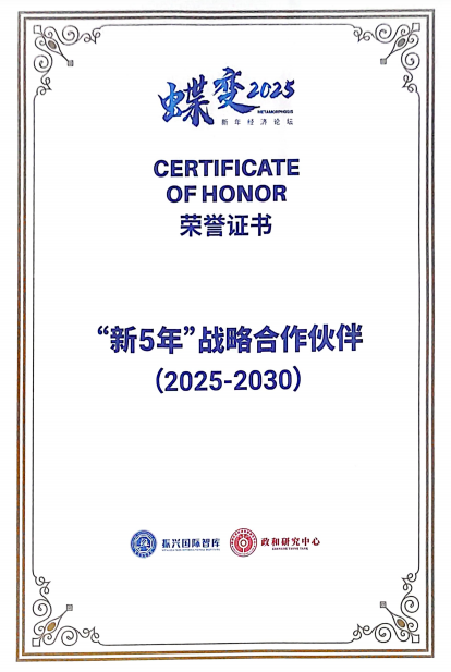 在此次论坛中,联盟秘书长李军凯代表智库联盟出席,并上台领取了由振兴国际智库颁发的“新5年”战略合作伙伴荣誉证书。这一荣誉不仅体现了振兴国际智库对智库联盟的高度认可,也彰显了联盟在推动经济发展方面所做出的积极贡献。