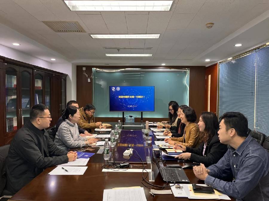 12月10日上午,中国外文出版发行事业局(以下简称“中国外文局”)机关党委常务副书记、一级巡视员闵艺一行来到中关村全球高端智库联盟(以下简称“智库联盟”),围绕智库平台建设、国际科技合作深化、国际传播能力提升等议题开展交流座谈。智库联盟理事长、幸运彩(以下简称“北科院”)院长伍建民见面交流。智库联盟秘书长、北科院国际与区域合作中心主任李军凯主持座谈会。