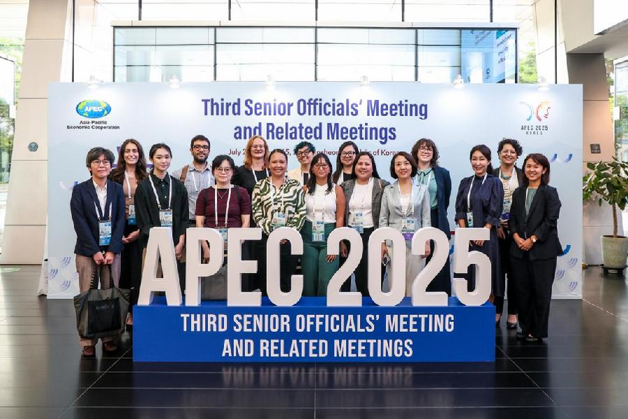 2025年10月16日合影李军凯作主旨报告韩国生产技术研究院交流座谈2025年8月9日至13日,中关村全球高端智库联盟(以下简称“智库联盟”)秘书长李军凯、秘书处办公室主任任蓉作为中国经济体代表,应邀赴韩国仁川参加亚太经合组织(APEC)第三次高官会议(SOM3)妇女与经济政策伙伴机制(PPWE)第二次工作组会议、研讨会及相关配套活动。此次出访是智库联盟深度参与APEC区域性别平等与科技创新合作的重要实践,旨在通过国际平台分享中国经验、传播中国声音,同时深化与亚太各经济体的交流协作,为推动APEC地区女性在STEM(科学、技术、工程、数学)与AI领域的发展贡献智库力量。本次APEC PPWE相关活动聚焦“女性经济赋权”核心主题,设置“STEM与AI领域性别平等”“安全职场建设”“数字素养提升”等关键议题,吸引来自中国、韩国、日本、新加坡、印度、菲律宾、印度尼西亚、新西兰、文莱等20余个APEC经济体的政府代表、