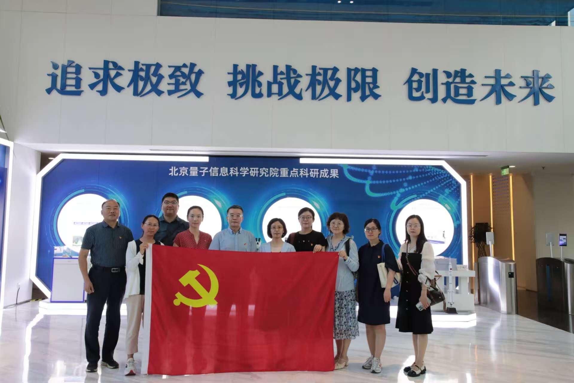 此次联学共建活动采取了“实地参观+座谈交流”模式。实地参观环节,在量子院党总支书记王金勇的带领下,政策模拟党支部参观了低维量子材料实验室、量子密钥分发实验室和量子直接通信实验室,并就量子材料、量子通信等具体问题与各实验室党员进行深入交流。