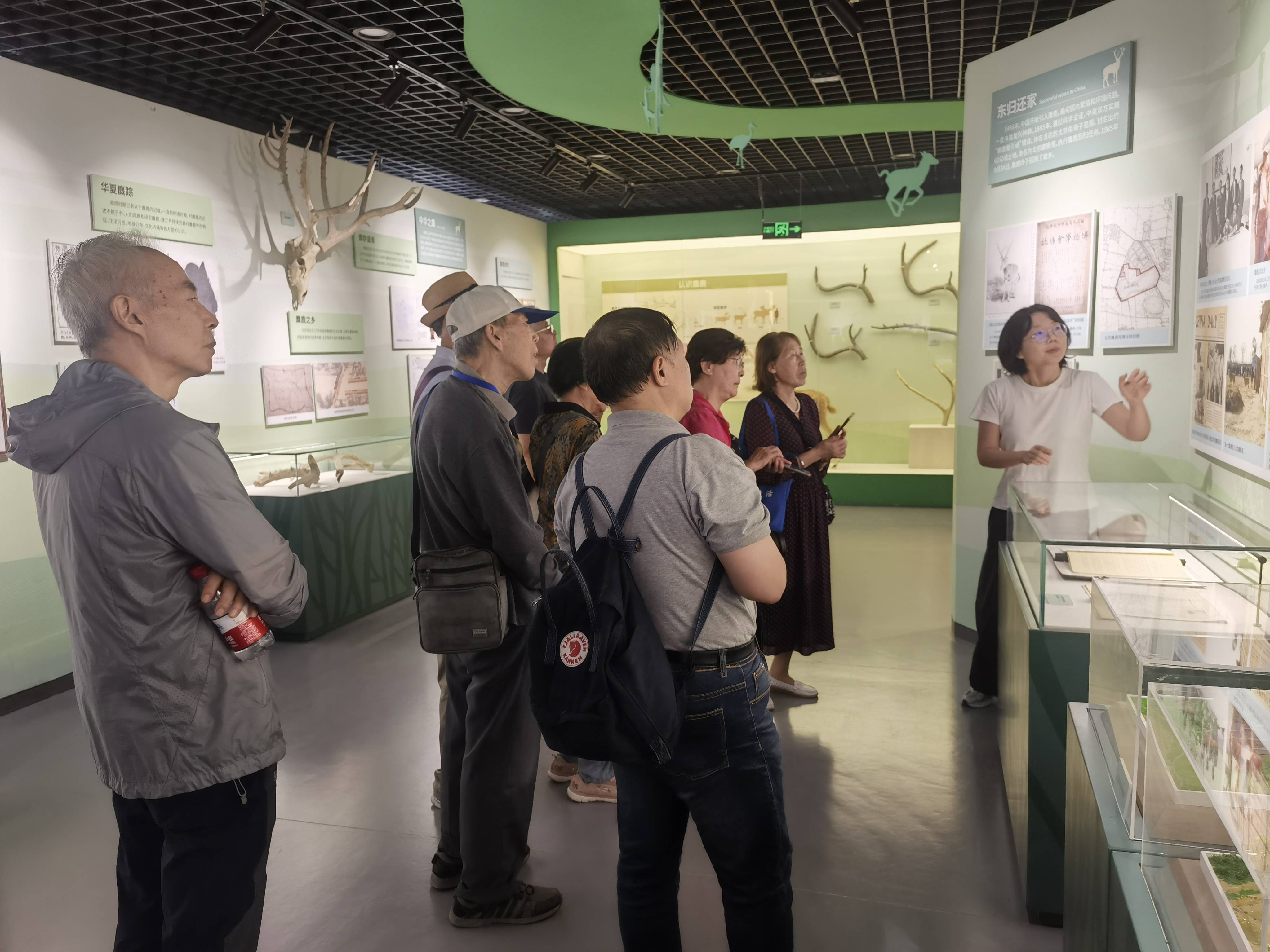 9月19日,秋高气爽,阳光明媚,十余位老同志带着喜悦的心情来到北京南海子麋鹿苑。本次活动的开展得到了北京麋鹿生态实验中心的大力支持。讲解员带领老同志在博物馆参观了“麋鹿传奇”展览,为他们详细介绍了麋鹿的起源、种类、分布以及麋鹿苑的发展历程。老同志们在工作人员的带领下,乘坐科普观光车参观了麋鹿自然保护区,近距离观察麋鹿的生活状态,体验生态文明之美。随后,老同志们还近距离地接触并投喂黇鹿、孔雀等动物。