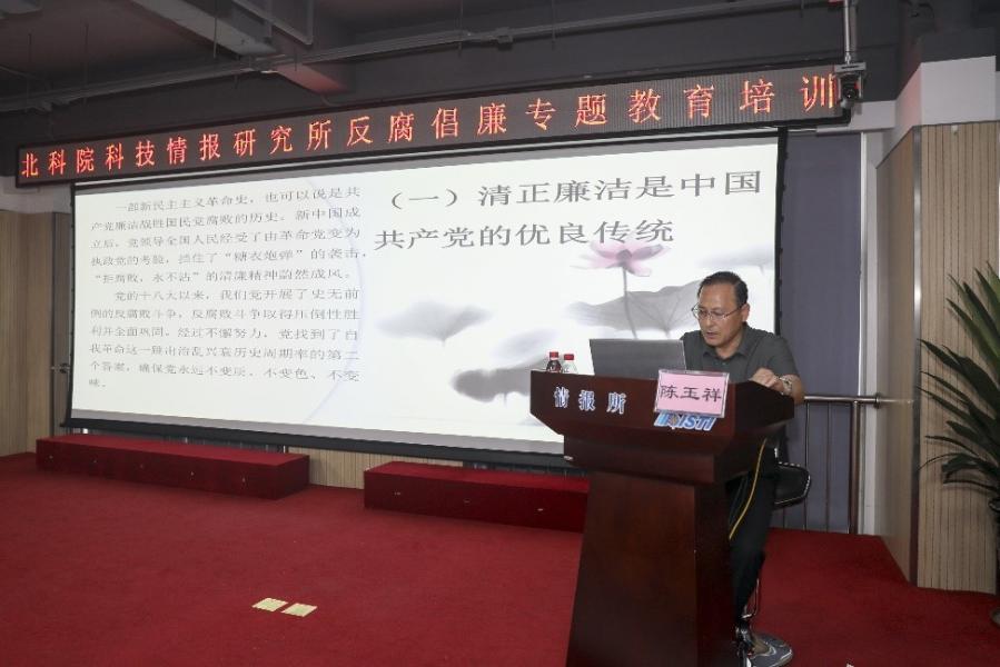 陈玉祥从“树牢廉洁意识”“践行廉洁行动”“倡导清廉风气”三个方面,结合发生在科技系统的真实案例,生动地讲解了清正廉洁是中国共产党的优良传统,是党员干部的党性要求和具体体现,也是党员干部从政从业的底线;指出清廉从政从业,贵在清,重在清,全在清。当前全面反腐败斗争形势严峻复杂,广大党员干部要加强学习,树立正确的权力观;要廉洁齐家,带头树立良好家风;要率先垂范,锻造优良行风作风。专题培训内容丰富、深入浅出,引人深思,令人警醒,为情报所全体党员干部上了一堂生动的教育课。