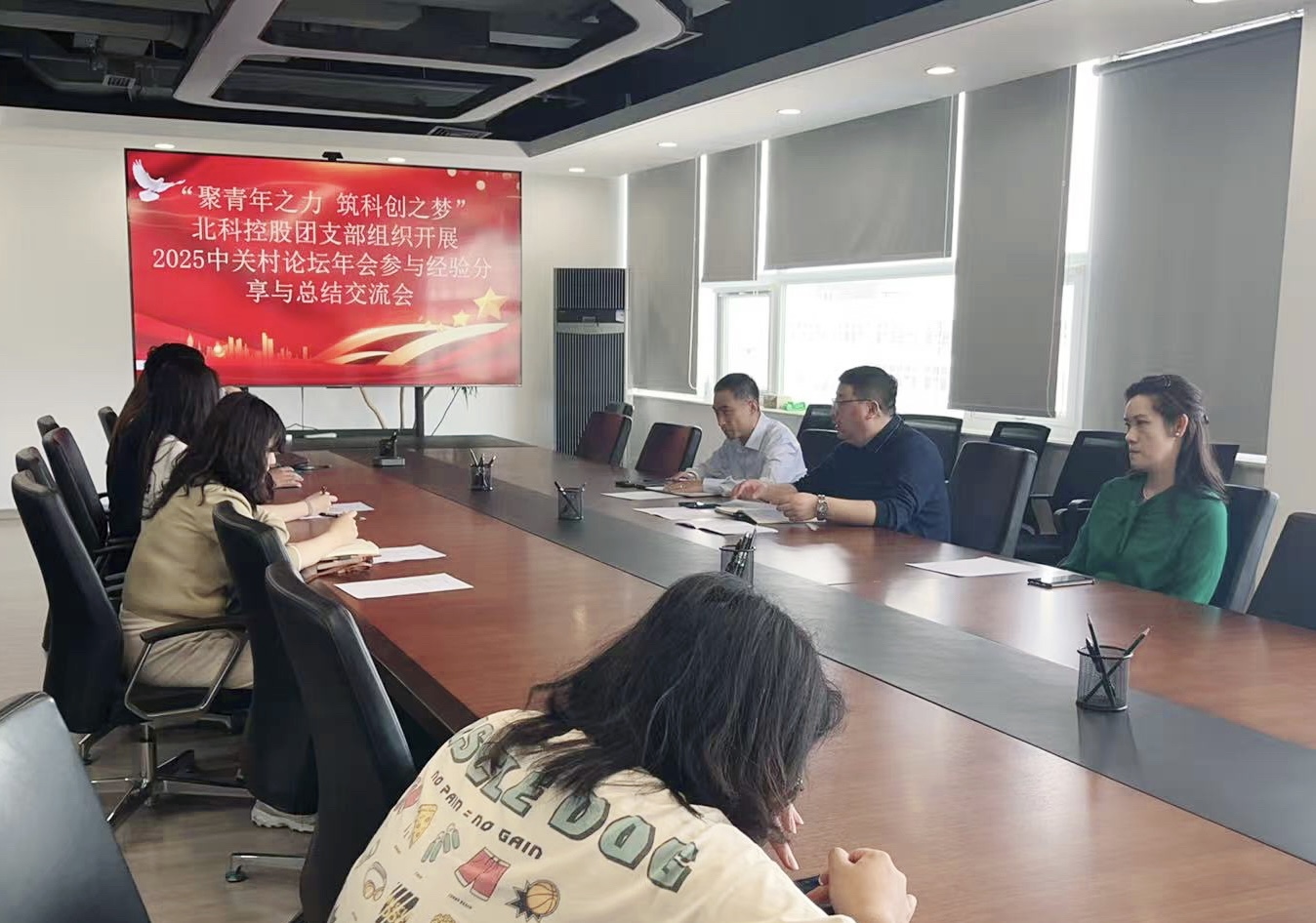为深入贯彻落实习近平总书记关于青年工作的重要思想,总结服务2025中关村论坛年会的宝贵经验,激发青年创新活力,在五四青年节来临之际,北京北科控股有限公司团支部(以下简称“北科控股团支部”)于4月9日下午组织召开"聚青年之力 筑科创之梦"——2025中关村论坛年会参与经验分享与总结交流会,持续传承在民族复兴中绽放青春光彩的五四精神。北科控股党支部书记,董事长侯同晓,副总张洋,副总陈一硕,共同参加会议,与青年骨干共话新时代科技创新发展的使命担当。