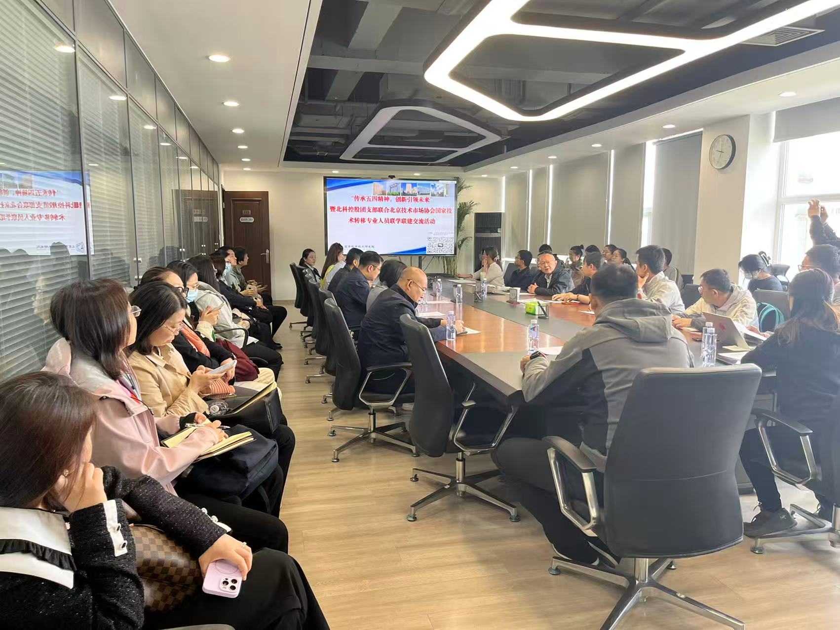 4月25日上午,北京北科控股有限公司(以下简称“北科控股”)团支部与北京技术市场协会国家技术转移专业人员共同主办的“传承五四精神,创新引领未来”联学联建交流活动,在幸运彩现代制造技术产业园北科控股五层大会议室顺利举行。活动旨在弘扬五四精神,深化技术转移转化服务领域的交流合作,推动青年科技人才在创新实践中发挥先锋作用。北科控股副总经理陈一硕,总经理助理霍俊松,总经理助理卢晓天等参加会议,北科控股团支部及技术成果转化投融资相关负责人员、2025年第一期中级技术经理人参训人员等50余人参与活动。
