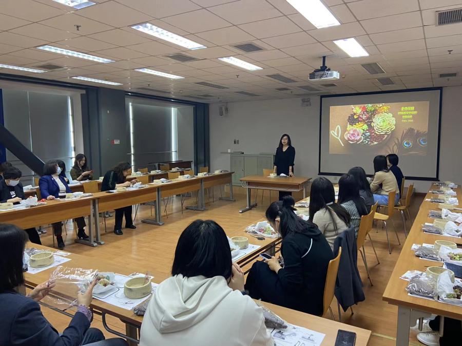女职工首先认真倾听了关于植物生长规律和多肉种植养护的专业知识,对多肉植物的品种、生长环境、基础养护有了基本的认识。随后,备受职工期待的多肉盆栽手工制作活动正式开始,大家亲自动手,在古香古色的花盆里进行铺土、撒沙、栽培,将十几种生机勃勃、绿意盎然的多肉花株以完美的造型和布局展现在盆景中。活动现场,女职工们洋溢着欢乐的笑脸,如同早春温暖的太阳。