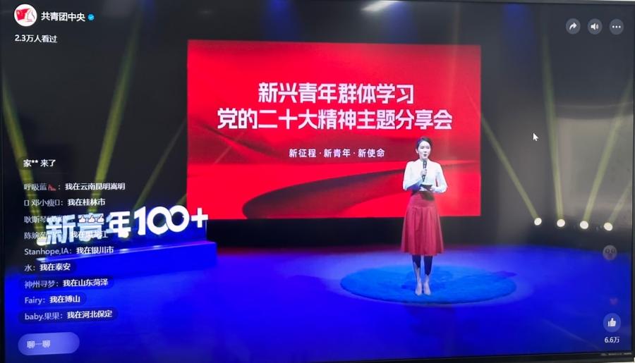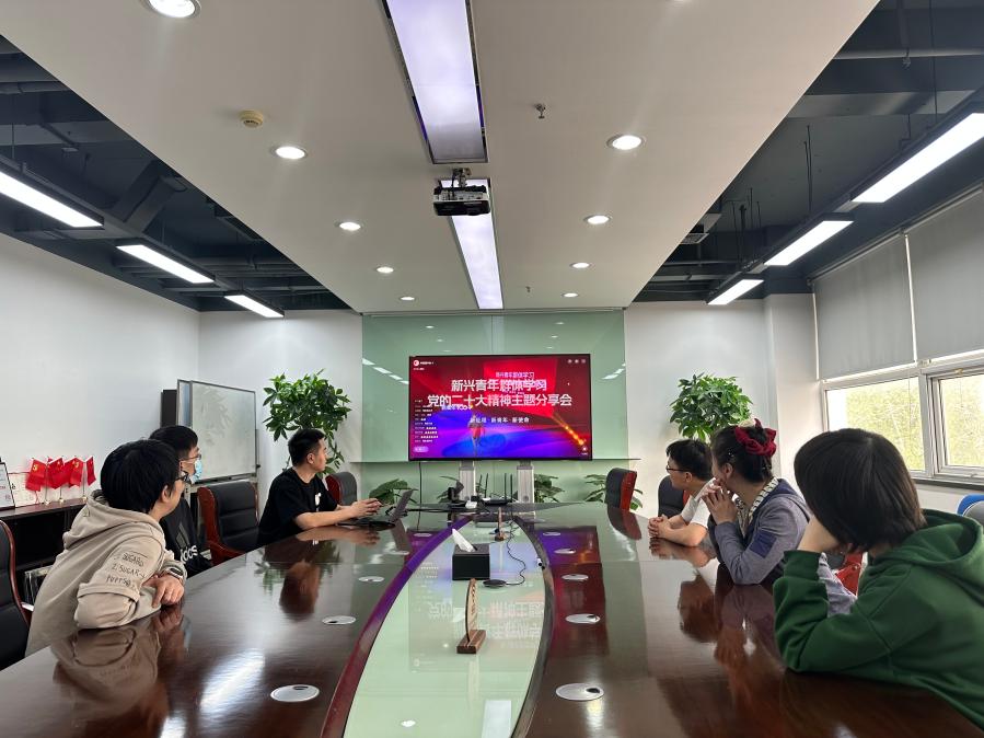 4月12日,共青团中央邀请了7位新兴青年代表,共同分享学习党的二十大精神的收获体会,讲述他们的青春选择和背后的动人故事。北京市新技术应用研究所有限公司团支部组织团员青年集中观看线上直播。