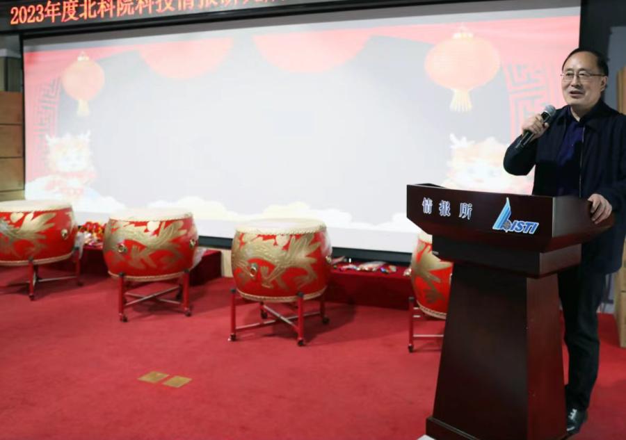 卫万顺为全所员工致祝福辞。他祝愿情报所全所员工新的一年人人快乐、家庭和睦、心想事成,祝情报所的明天更加美好!