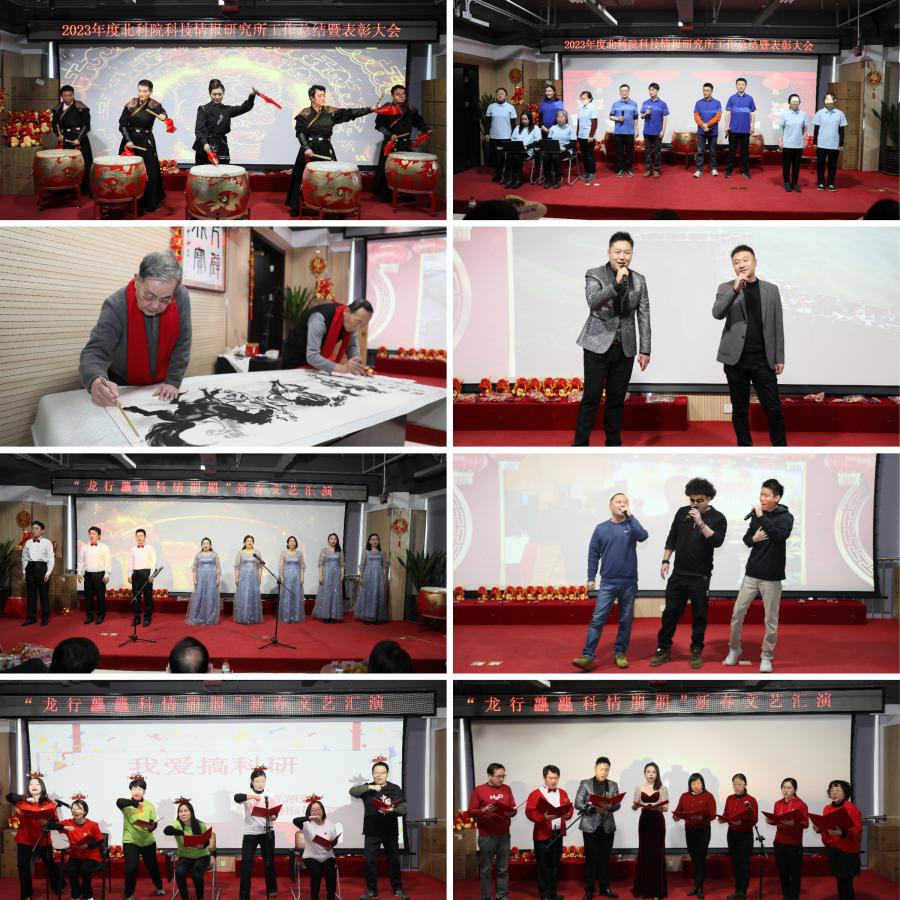汇演中,各部门职工纷纷带来自编自导的舞蹈、朗诵、小合唱、书画表演等精彩表演。期间,舞蹈《中国鼓》将鼓手与舞者完美结合,共同演绎出一场震撼人心的视听盛宴。情报所老干部代表献上了他们精彩的书画表演《墨·念》,他们现场创作,将马的形象、气质和力量表现得淋漓尽致,为观众带来一场视觉和心灵的盛宴。信息技术部全体成员带来了由吕志坚主任创作的朗诵表演《碳基数字人之歌》。诗歌以“碳基”数字人为切入点,讲述数字科技带来的便利与挑战。歌曲《龙的传人》、唱跳《我们都是追梦人》、歌曲《海阔天空》、情景朗诵《我爱搞科研》、合唱《如愿》等节目表演也充分展现了情报所职工热情洋溢、活力四射的风采。同时,还有抽奖和互动游戏环节,情报所职工积极参与,大家其乐融融。汇演最后,伴随着《难忘今宵》熟悉的旋律,院领导及所领导班子带领全体员工一起倾情演唱,共同迎接新春佳节的到来!