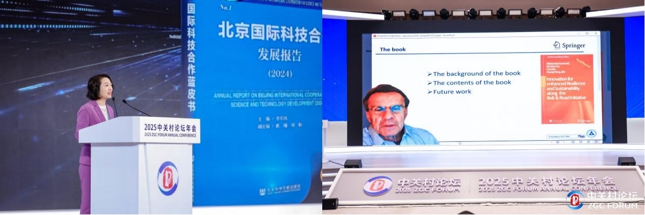 在新书发布与介绍环节,智库联盟秘书长、北科院国际与区域合作中心主任李军凯发布了国内首部国际科技合作蓝皮书——《北京国际科技合作发展报告(2024)》。该书清晰界定了国际科技合作的内涵与形式,同时通过翔实的数据和丰富的案例,系统梳理了北京国际科技合作的发展现状与未来趋势,并提出了北京国际科技合作未来发展的关键锚点、行动路径和政策建议。智库联盟荣誉顾问、史太白欧洲综合风险管理学会首席执行官亚历山大·约万诺维奇(Aleksandar JOVANOVI)视频介绍Innovation for enhanced Resilience and Sustainability along the Belt & Road Initiative(《“一带一路”倡议下有韧性和可持续的创新》)一书。该书围绕“一带一路”沿线国家和地区的韧性与可持续创新问题,汇集了来自16个国家专家学者的研究成果。