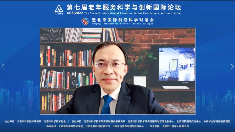 伍建民在致辞中指出,当前,新一轮科技革命和产业变革突飞猛进,科学研究范式正在发生深刻变化,学科交叉融合不断发展,科学技术与经济社会发展日益渗透融合。以人工智能、量子信息、移动通信、大数据、物联网、区块链为代表的新一代信息技术加速突破应用,如何运用这些技术在健康及养老领域的集成创新和融合应用,改善养老服务环境,为老年人提供更加智慧化的养老服务,助推养老模式的创新和升级,必将成为未来养老服务体系中的重要一环,是解决中国养老问题和发展老龄产业的重要途径。老年服务科学与创新研究一直是北科院重点支持方向之一,也是北科院生命健康领域的重点方向,老年服务科学和创新国际论坛是北京科技国际交流合作的重要平台,不仅具有“政产学研”综合一体的学术特征,还具有跨国际的交流融合特征。伍建民指出,老年服务科学与创新国际论坛作为一个连接科研与需求两端、汇聚国内外专家学者、持续召开的国际会议,在业内已经逐渐显现出一定的影响力。希望各位嘉宾利用这个论坛的平台,发表真知灼见,交流思想观点,碰撞思维火花,启迪智慧精华,共谋合作大计,共同推动全球老龄事业的创新发展。北科院将秉承“科技让生活更美好”的价值追求,贯彻落实国家积极应对人口老龄化战略,一如既往地加大智慧养老领域科技创新的支持。