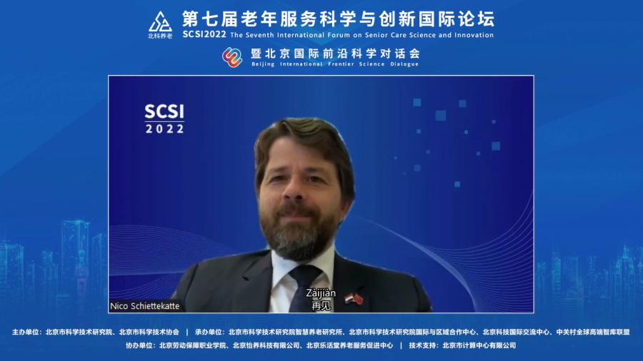 Nico Schiettekatte在致辞中提到论坛彰显了多年来荷兰大使馆与SCSI主办方建立的深厚关系,据Nico Schiettekatte介绍,目前荷兰国内生产总值的4%用于长期护理,这比任何其他发达国家都要多。除了改善老年人的生活质量和环境外,技术和创新也是避免老年护理支出增加和人员持续增加的重要因素。荷兰有四项主要医疗法案和老年照护有关,并且推动了老年照护领域的科技创新。其一是预防,例如人工智能平台被用来专注预防术后并发症或应用于生活方式监控;其二是技术和社会创新,例如智能眼镜技术就可以支持医院专家护理中心的康复团队和专业护士共同开展综合护理,还有其他诸如智能尿失禁材料和佩戴在臀部周围避免跌倒时导致骨折的安全气囊等创新;其三是过去10年,荷兰一直致力于推动家庭护理的创新,采用所谓一系列家庭护理科技,比如用于支持每日生活安排和生活方式监测的社交机器人和提醒系统都可以由医保报销;其四是失智症,2004年起荷兰政府一直致力于通过一些项目的实施来改善失智症的护理和治疗,目前荷兰已经在研发针对失智症4个阶段的不同技术。