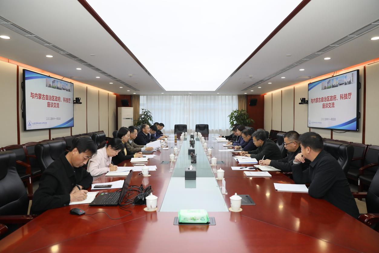 内蒙古自治区科学技术厅办公室主任史广旭,平台处处长齐鸣;内蒙古自治区人民政府秘书三处副处长孔繁宇,孙俊青副主席秘书王黎莉,秘书三处刘锦涛;北科院办公室主任、行政处处长张帅,科研处处长、智能装备所书记郭鲁钢,国际与区域合作中心主任李军凯、副主任罗希婧,科技成果转化处业务骨干等参加座谈交流。