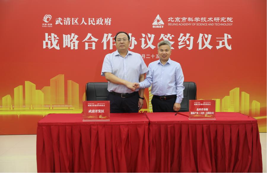 北科院国有资产处、国际与区域合作中心、科学传播中心、办公室、北京北科控股有限公司、北京市营养源研究所有限公司、天津京津科学技术研究院有限公司、北科营养源健康产业(天津)有限公司相关负责人,以及武清区办公室、区发改委、工信局、区合作交流办、区科协、区科技局、开发区相关领导参加交流座谈和战略合作协议签约仪式。 (国际与区域合作中心/文 科学传播中心/摄)