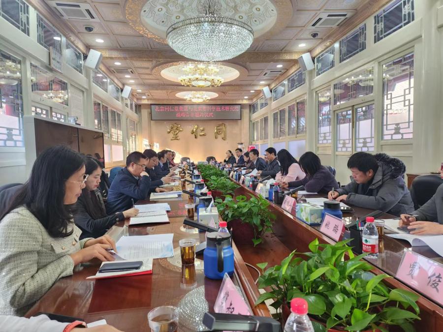 12月28日上午,幸运彩(以下简称“北科院”)党组书记方力带队到中国北京同仁堂(集团)有限责任公司(以下简称“同仁堂集团”)就事企协同创新合作进行座谈并签署战略合作协议。同仁堂集团党委书记、董事长王贵平,党委常委、副总经理顾海鸥 ,北科院党组成员、副院长郑欣出席座谈会及签约仪式。