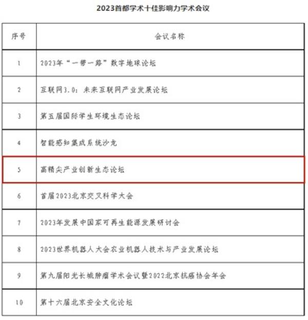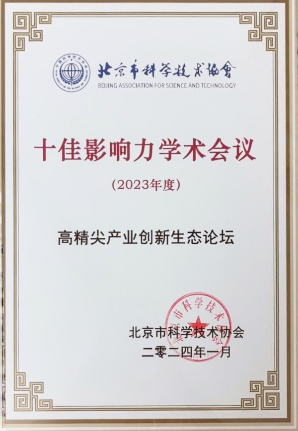 高精尖产业创新生态论坛获2023年度十佳影响力学术会议