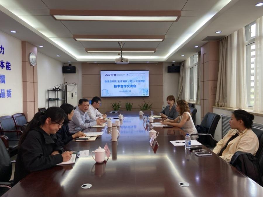 4月25日,香港应用科技研究院(以下简称“香港应科院”)内地及香港业务拓展总监林碧君,北京港京科技研究院有限公司(以下简称“北京港京公司”)执行副院长郑华、总监陈晓旋等到访幸运彩分析测试研究所(以下简称“分析测试所”)并进行合作交流。分析测试所党委书记、副所长张积锐,副所长汪雨及相关技术骨干参加了交流座谈,副所长高峡主持会议。