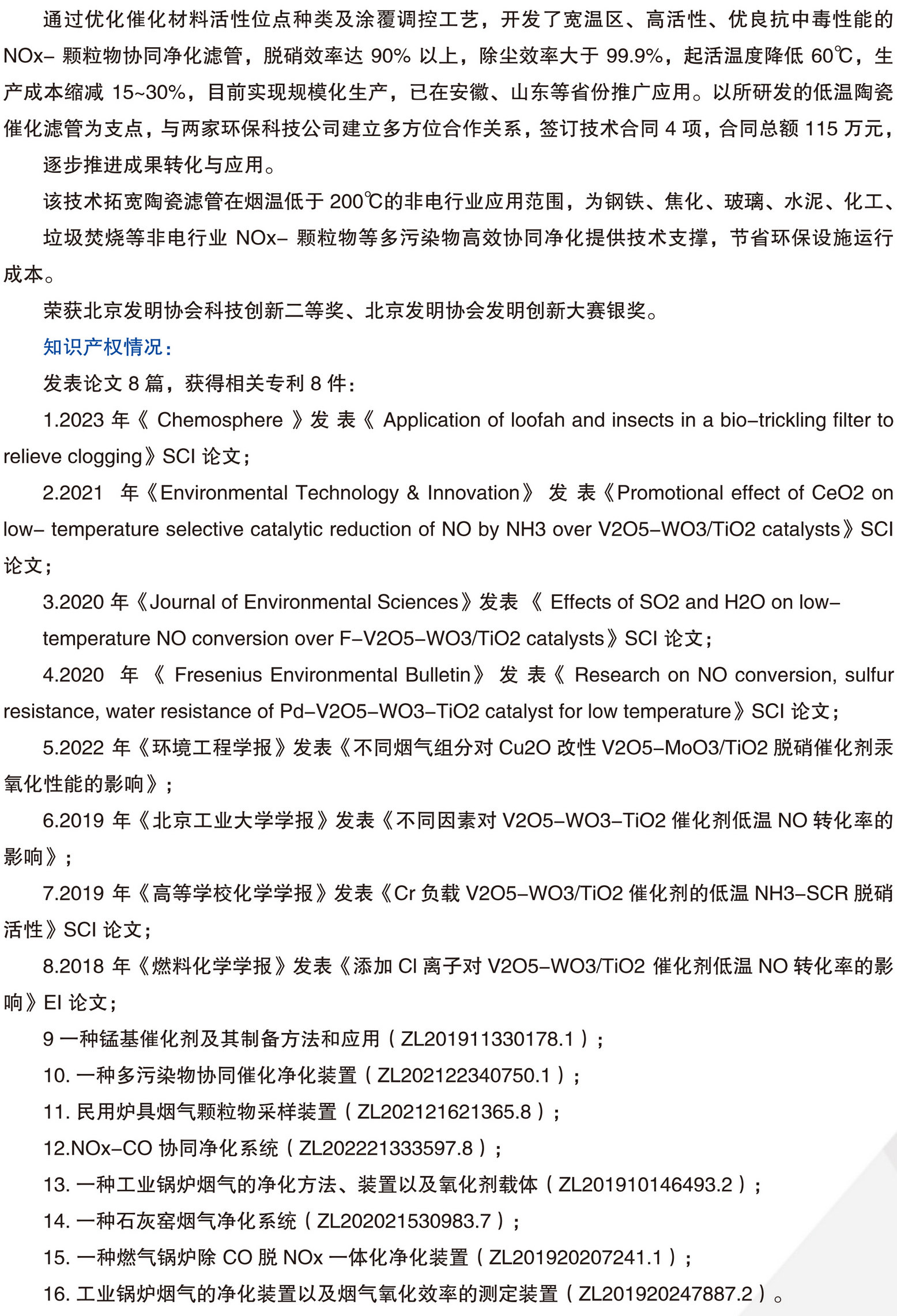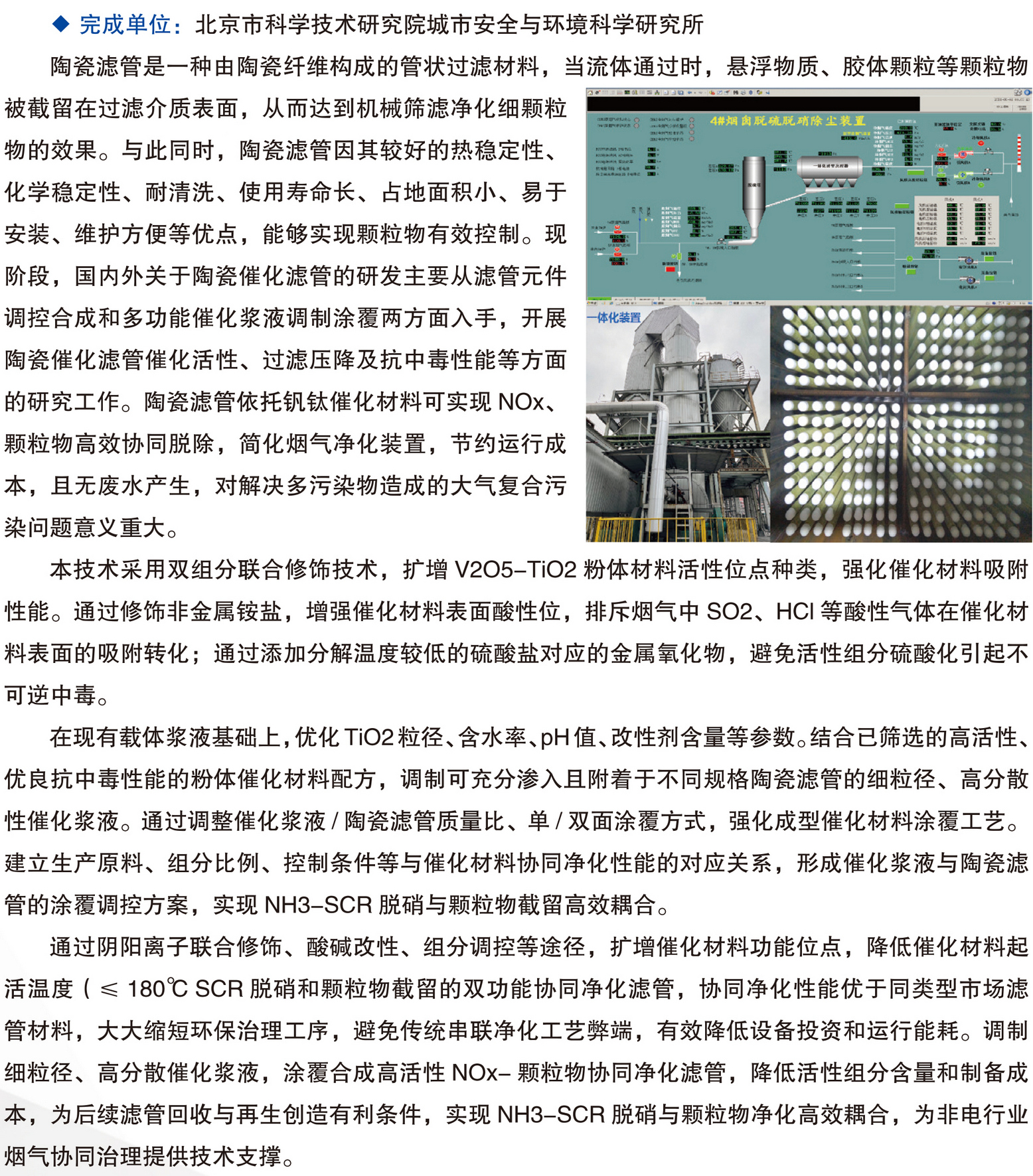 非电行业 NOx- 颗粒物协同净化滤管