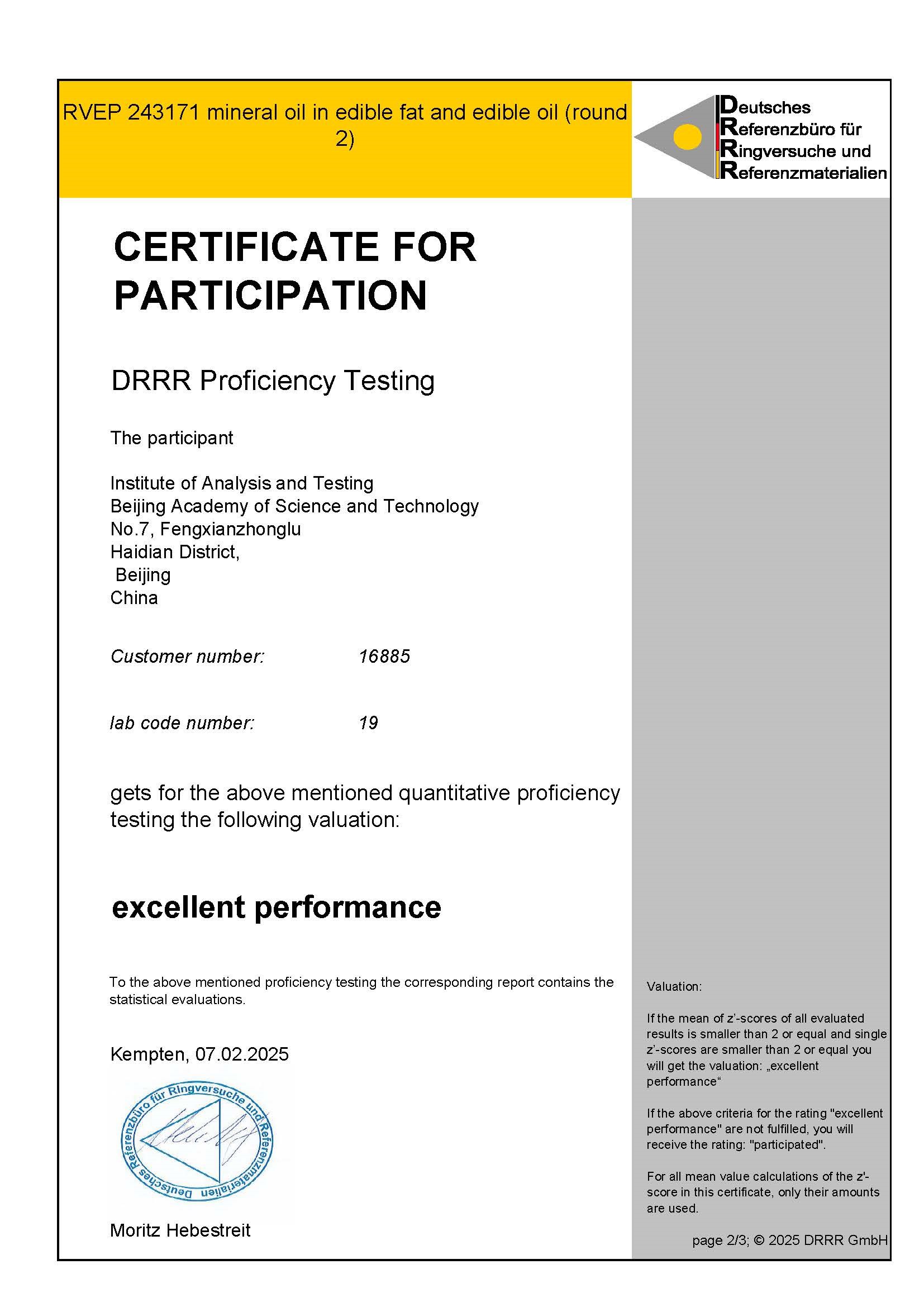 此次佳绩的取得是对矿物油分析测试技术团队专业能力的有力证明,也是分析测试所持续推动技术创新、提升检测水平的成果展现。未来,团队将继续秉持严谨科学的态度,不断探索和突破,为保障我国食用油质量安全和相关产业的健康发展贡献更多力量。