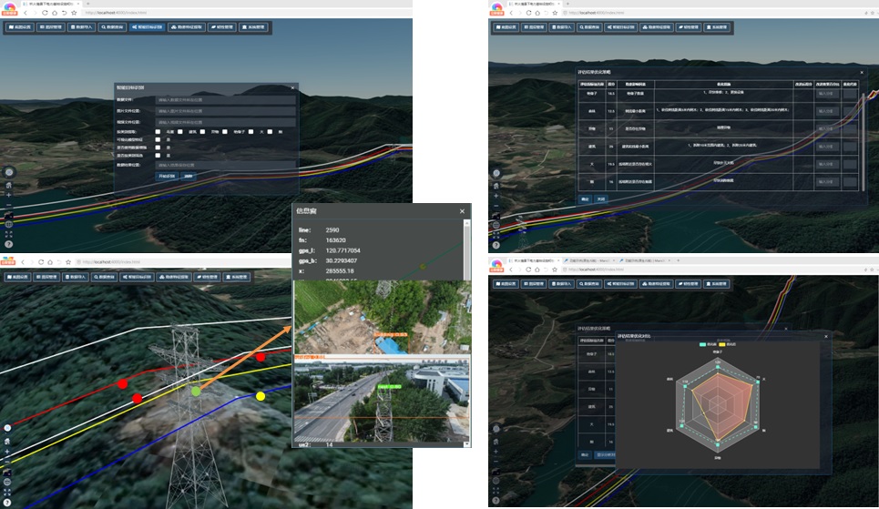 钟少波团队基于多年在安全信息协同感知、信息融合与时空知识建模方面的研究成果和经验,构建了机上实时目标检测、测风改正模型,提出了地面设备运行状态、安全管理活动和环境变化监测技术,提出了空地协同感知与融合技术,构建了林火情景下高压输电线路韧性评估指标体系。研究团队针对林火风险情景下高压输电线路系统韧性评估与对策优选应用进行了天地数据获取软硬件集成,开发了数据导入、数据查询、智能目标识别、隐患特征提取、韧性管理等功能,实现了在无人机巡线过程中监测风速风向,检测建筑、农田、鸟巢、异常绝缘子等高危目标,动态识别风险隐患,对林火情景下高压输电森林走廊开展动态韧性评估与策略优化。