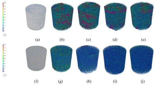 图2.不同反应时间下砂柱的孔隙率变化三维分布图