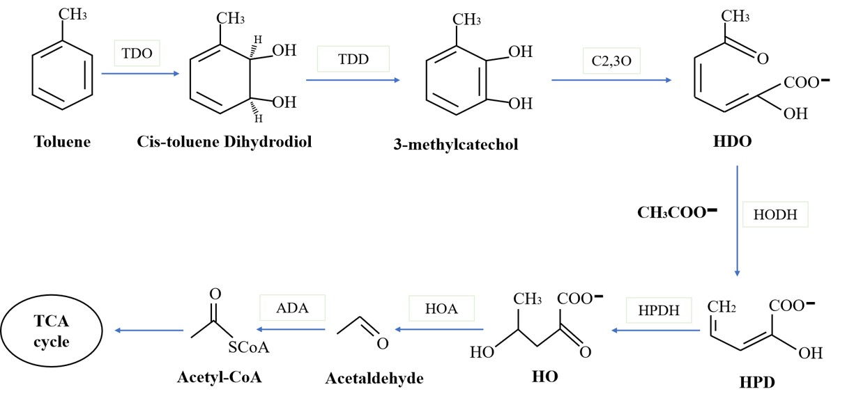 图8.微生物EPS对甲苯的阻控及刺激土著微生物降解甲苯的途径