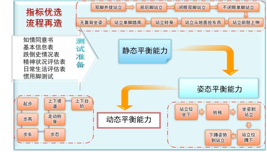 研究团队分析了近年来老年人平衡能力相关技术的国际标准、国家标准、行业标准、地方标准,对老年人平衡能力的关键性技术指标开展比对分析研究,并结合我国老年人情况,利用养老所实验室设备进行技术指标测试验证,在现有老年人平衡能力定性评估方法的基础上,补充了定量分析的内容,并撰写有老年人平衡能力评估标准草案。基于测试法得到的定量化指标,对现有量表进行定量化修订,提出了可以更为精确地反映老年人平衡能力的定量评估测试量表,为无医疗学科背景的老龄服务人员提供支持。