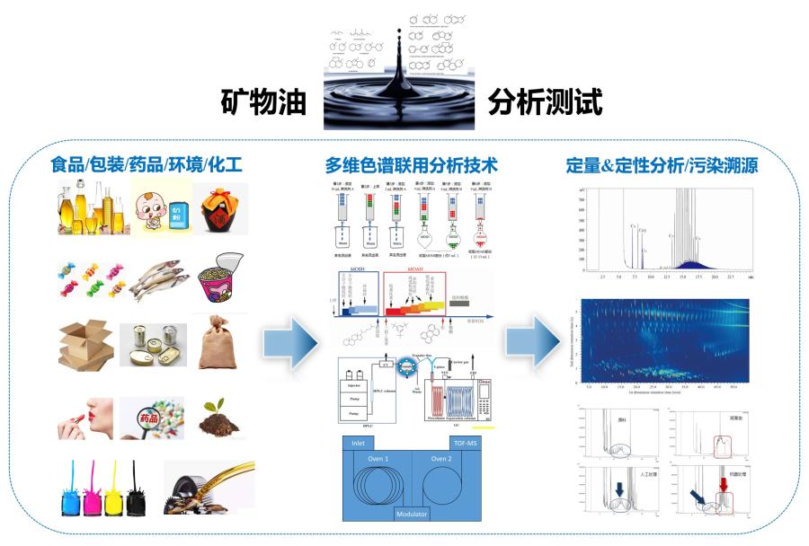 矿物油源于石油与费-托合成油,人类生产生活中经常使用的柴油、润滑油、溶剂油等的主要成分都是矿物油,因此矿物油污染普遍。随着分析测试技术的发展与人类健康意识的提升,食品、药品、日用品以及环境中的矿物油污染备受关注,相关的风险管理与监管要求逐年加强。然而,矿物油的化学组成复杂、分析干扰众多,特别是不同种类样品的基质干扰千差万别,导致矿物油分析检测困难,需要针对不同领域、不同样品研发相适应的分析检测方法。