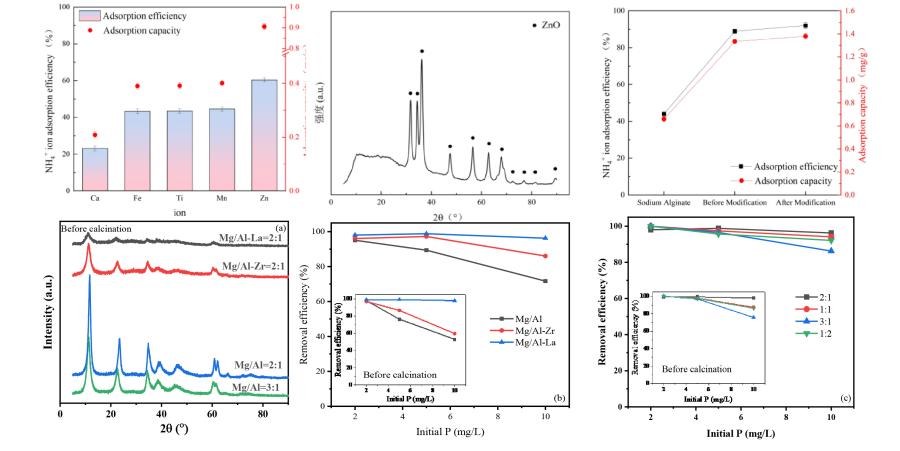 针对新污染物难以矿化问题,团队开发了高性能低载量Mn-Ce@Al2O3催化剂,相比于文献报道的同类型催化剂,活性组分含量大大降低,且分布更均匀;对比同类型市售催化剂,催化效率提高10%-30%。针对低浓度氮磷去除效果不理想问题,团队研制的颗粒海藻酸钠基复合氨氮吸附材料可实现92%的氨氮去除,同时开发了新型Mg/Al-La复合吸附材料,其具有磷酸盐去除率高(98%)、吸附容量大(70.3mg/g)、pH适用范围宽(3-10)和磷酸盐选择性好等优势,对磷酸盐的吸附量较文献报道的同类型吸附剂提高了42%以上。针对纳滤膜污染问题,团队开发了在线渗透清洗技术,较传统水力清洗更加高效,有效缓解了膜污染,大大延长了纳滤膜的化学清洗周期,延长了膜寿命,保障了膜系统的长期稳定运行。基于上述成果,团队建立了“催化臭氧氧化-高效吸附脱氮除磷-纳滤”工艺系统,能实现低浓度氮磷的深度脱除,总有机碳(TOC)去除率可达85%以上,高品质再生水资源回收率达到80%以上。