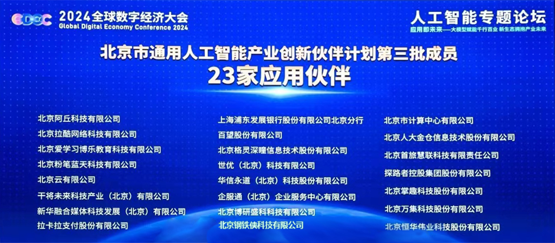 7月1日,2024全球数字经济大会人工智能专题论坛在京召开,北京市计算中心有限公司(以下简称“计算中心”)董事长兼总经理刘彤博士应邀参会。论坛发布了“北京市通用人工智能产业创新伙伴计划”第三批成员名单和人工智能大模型应用场景典型案例,计算中心作为应用伙伴成功入选伙伴计划,并有2项成果入选“人工智能大模型应用场景典型案例”。