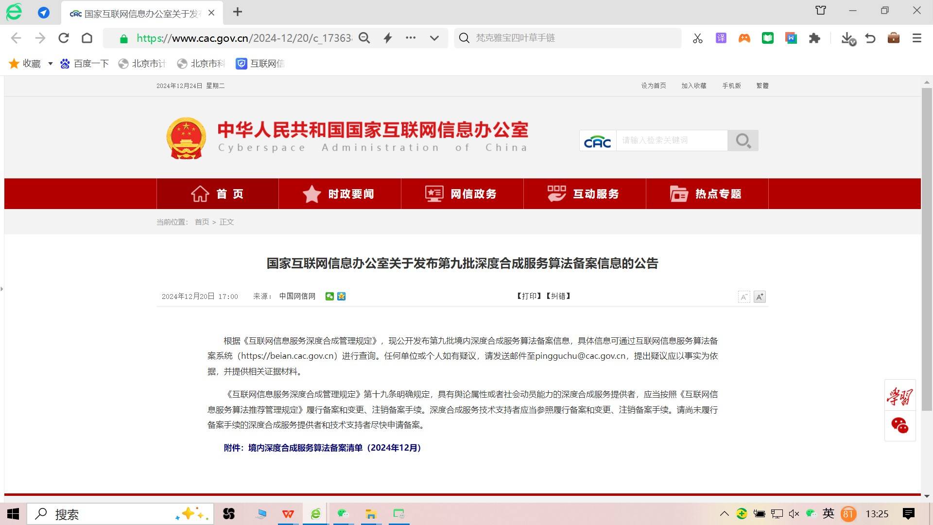 计算中心一项生成式智能算法顺利通过国家网信办算法备案