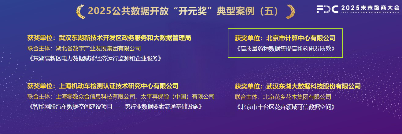 3月21日 “以数据·见未来”为主题的2025未来数商大会在杭州未来科技文化交流中心盛大启幕。大会聚焦公共数据开放与市场化配置,汇聚全国政企学研代表共探数据要素创新发展路径。会上,北京市计算中心有限公司(以下简称“计算中心”)凭借《高质量药物数据集提高新药研发质效》项目摘得公共数据开放领域最高荣誉“开元奖”,受到行业的赞誉和关注。