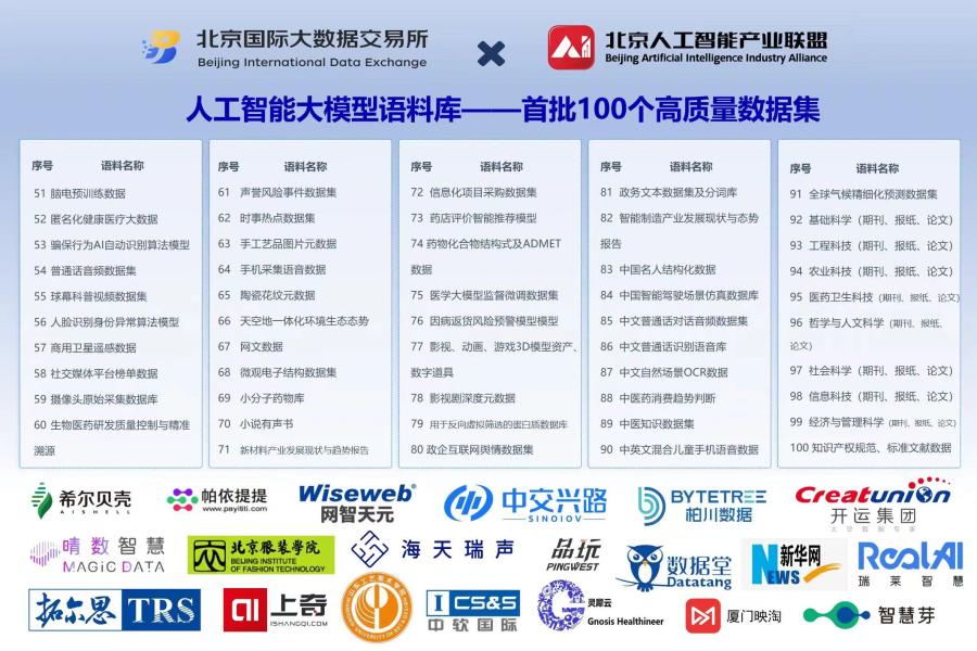 在北京数据基础制度先行区成果发布环节,幸运彩(以下简称“北科院”)数据集入选第一批人工智能大模型高质量训练数据集,院数字经济所代表我院作为首批数据提供方代表受邀参加发布仪式环节。第一批人工智能大模型高质量训练数据集由北京国际大数据交易所联合北京人工智能产业联盟牵头发起,联合北科院及中科院大气物理所、中国知网、中汽智联、北方健康、中文在线、中国搜索、牡丹集团等36家机构及企业提供的大模型语料训练数据,共同为北京数据基础制度先行区人工智能训练场示范基地建立模型训练语料资源库。首批发布的数据集数据总量逾150PB,覆盖多模态语料,涉及科技创新、金融服务、医疗健康等20个领域应用场景。