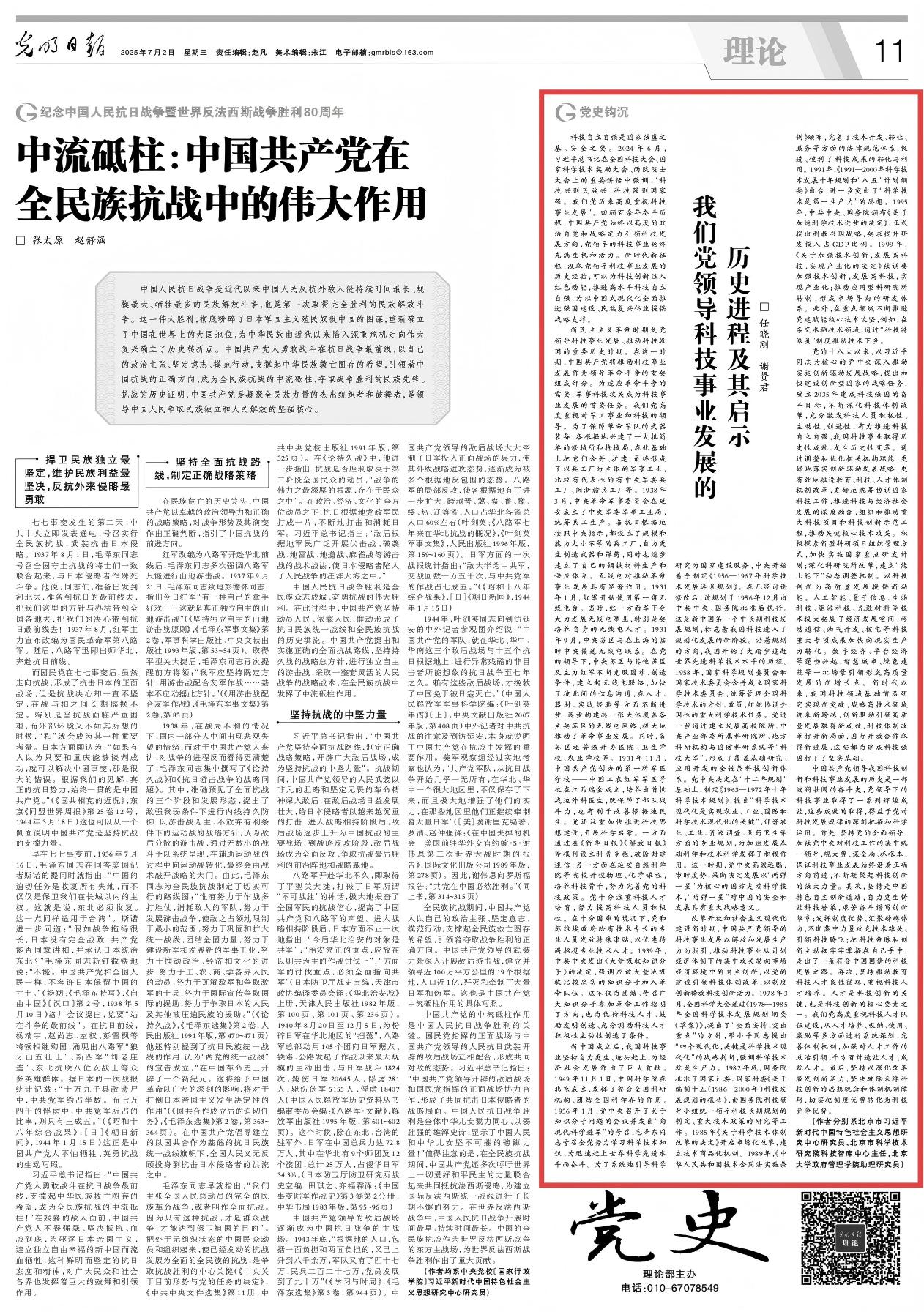 我院科技智库中心主任任晓刚研究员于《光明日报》理论版发表文章——我们党领导科技事业发展的历史进程及其启示