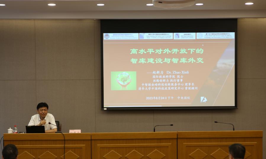 丝路创新力执行董事、清华大学中国科技政策研究中心资深顾问赵新力院士讲授了如何成为智库专家和国际智库排名专家的经验;结合在中国科学技术交流中心等多个单位的智库建设经历、金砖国家科技创新竞争力系列皮书和《科技创新引领二十国集团未来》等国内外知名智库成果,分享了建设国际知名智库的工作理念,以及通过智库交流促进国际合作的多个典型案例。