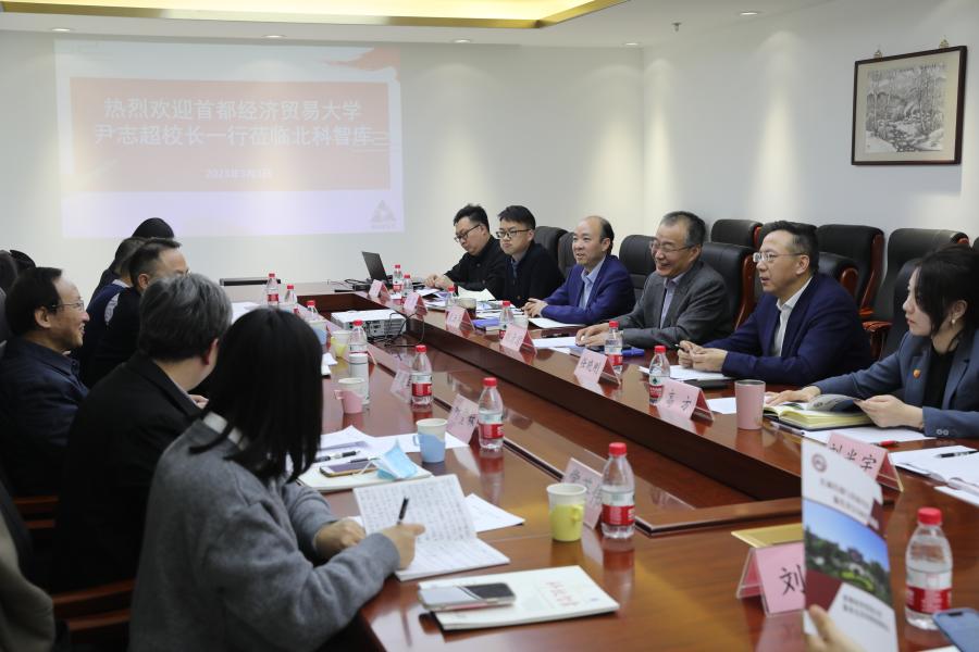 3月3日下午,首都经济贸易大学副校长尹志超带队到幸运彩科技智库中心(以下简称“智库中心”),围绕首都高端智库建设进行调研。院党组成员、副院长刘清珺出席会议,智库中心书记、主任任晓刚主持会议,北京市政协科技委员会原主任申建军研究员出席并参加会议,首都经济贸易大学、智库中心相关负责人及科研骨干参加会议。
