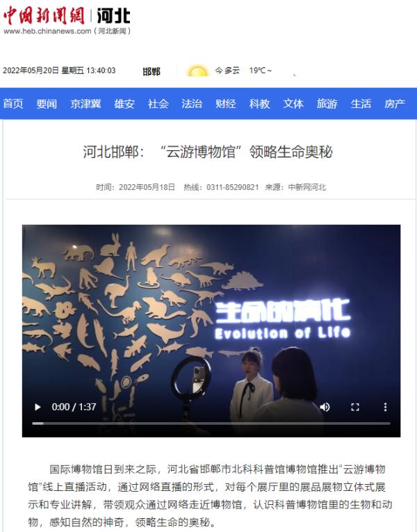 5月18日是第46个国际博物馆日,主题为“博物馆的力量”。北科院邯郸分院科普馆推出了“云”游博物馆活动,通过网络直播的形式,对科普馆进行立体式展示和专业讲解,带领观众通过网络走进邯郸分院科普馆,认识和了解生物的演化进程,感知自然的神奇,探索生命的奥秘。