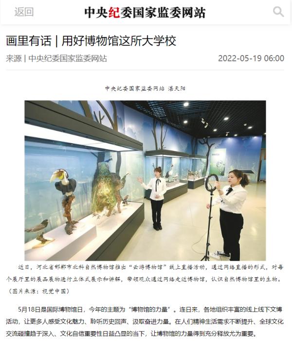 本次活动相关新闻阅读量突破百万。得到了中国日报、中国新闻网、河北日报等十余家国家、省、市级媒体的报道,被中央纪委国家监委专题评论文章《用好博物馆这所大学校》引用为开篇案例。 (北京北科控股有限公司 文/摄)