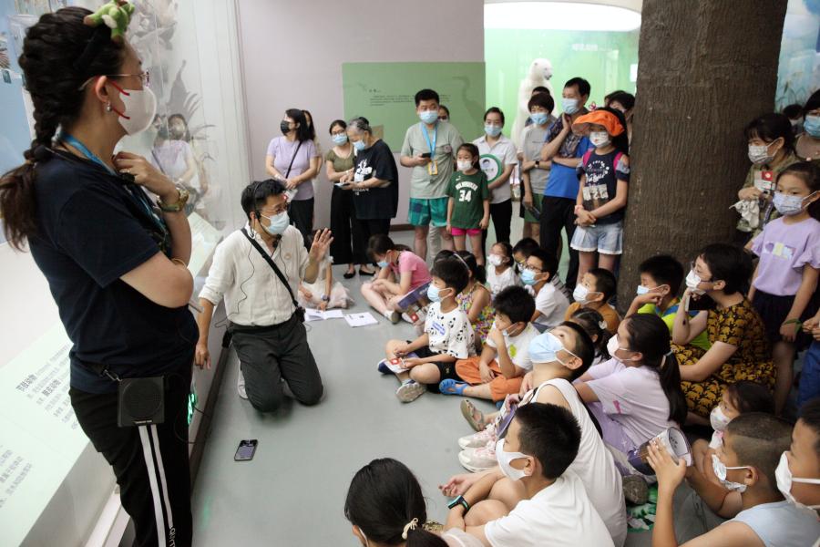 “听专家及明星志愿者讲解”活动同样深受欢迎。活动安排了学术专家、志愿者和小小讲解员们在古生物展厅、古哺乳动物展厅、“神奇的非洲”展厅、“人之由来”展厅里为提供观众科普讲解。志愿者老师们的主题讲解风趣幽默,针对小观众的学习特点增加了肢体互动的设计,尤其受到小观众们喜爱。