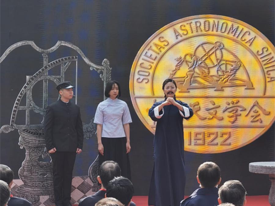为回顾中国天文学会在曲折艰辛中创立的百年历史,北京天文馆公共服务部将自主创作的科普剧《凝望苍穹——天文国宝 百年纪实》搬上舞台,重现百年前天文学先驱舍身成仁的大义凛然和不忘初心的薪火传承。