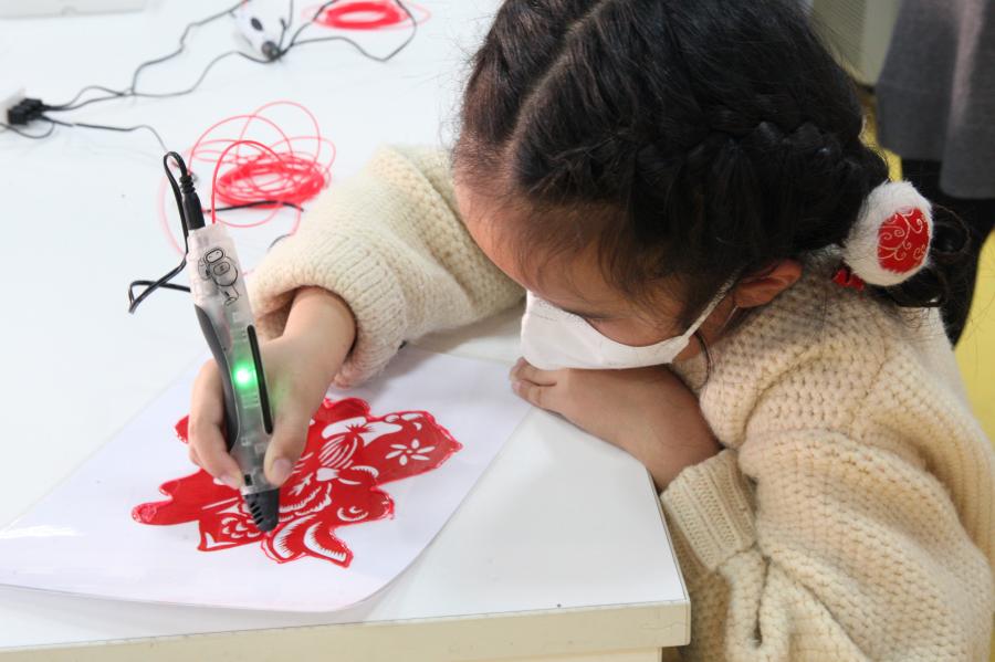 看完新展,凉山彝族小朋友们还参观了“古爬行动物”“动物——人类的朋友”“人之由来”“植物世界”等常设展览,欣赏了自然馆原创4D科普电影《黑羽精灵》,并参加了自然馆探索角主题活动——“玉兔闹春、福兔呈祥”。科普老师介绍了大自然里各种兔和兔的“亲戚们”,引导大家手持3D打印笔制作“福兔窗花”,用木板拓印福兔年画,给孩子们带来了数字技术与传统文化相互融合的新奇体验。
