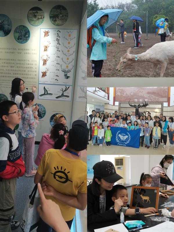 麋鹿中心联合首都医科大学附属北京儿童医院、生态环境部对外合作与交流中心、平谷区太后村等精心组织贴近儿童、贴近自然的主题活动,进一步激发儿童的好奇心、想象力和探求欲,培养科学兴趣,做到学思结合、寓教于乐。通过“小小科考员”,让孩子们深入麋鹿保护区,实地观察国宝麋鹿的生活环境;“小小饲养员”,让孩子们用饲料当“见面礼”,与黇鹿、孔雀“交朋友”;“小小探秘员”,用孩子们爱听能懂的“童言童语”讲好麋鹿的传奇故事,探索世界鹿类的妙趣;“小小观影员”,通过《鹿王争霸》《小麋鹿诞生》等纪录片,让孩子们近距离感受麋鹿的生活状态;“小小观察员”,让孩子们穿梭于麋鹿苑环苑教育路径上,激发学习科学、探索科学的热情;“小小体验员”,让孩子们通过自然游戏、手工课程、趣味运动会等活动,感受大自然的魅力;“小小调查员”,为了更好的开展儿童教育工作,通过调查问卷的方式,聆听孩子们对活动的想法和意见。活动累计200多个家庭、230余名儿童参加。