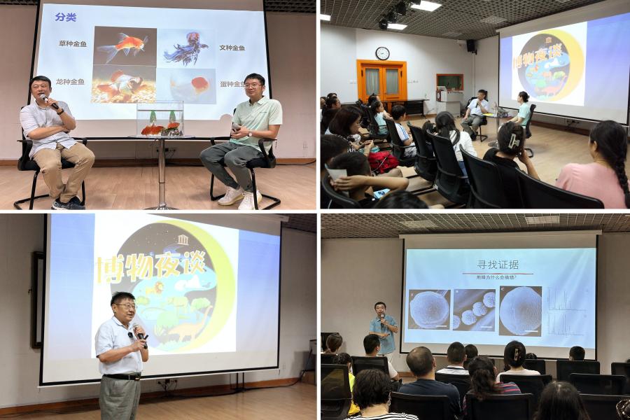 中国科学院院士、古鱼类学家朱敏院士受邀走进“锺健讲堂”,以“从鱼到人第一步:鱼类登陆”为主题,带来一场科普讲座。朱敏院士深入浅出地介绍了相关领域最新研究与发现,现场的小听众在讲座过程中和讲座结束后的问答环节格外积极踊跃,而朱敏院士也都耐心地一一做出解答。由馆内、外自然科学学者、专家与公众共同开展话题分享和知识交流的“博物夜谈”活动,在此期间共举办8场,涵盖古生物学、植物学、动物学、天文学等领域,主题有“古生物学家养成记”“对恐龙和鸟类的亲子鉴定”“植物学家养成记”“城市中的动物邻居”“星空下的自然之窗”等等,科普专家们的诙谐幽默让活动现场笑声此起彼伏,其中“古生物学家养成记”“植物学家养成记”两场直播共收获75万人次的点击量。