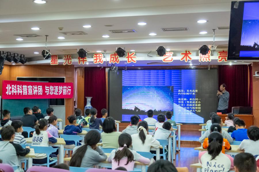 馆长开讲“了不起的宇宙”。10月25日,北京市第八中学八少八素班课堂上不时响起此起彼伏的欢笑声和喝彩声。“地球有多大?太阳有多远?”“浩瀚的宇宙到底有多大?”“神秘的宇宙深处有什么?”“为什么要研究宇宙?”“你想知道宇宙更多的奥秘吗?”北京天文馆副馆长、北京古观象台台长、北科科普宣讲团宣讲专家齐锐,正将晦涩难懂的天文知识转化成“接地气”科普宣讲,以青少年最感兴趣的话题点讲述《了不起的宇宙》,引发了学生们强烈好奇心,点燃探索科学激情。齐锐以“自制星球道具”深入学生中间热烈互动,亲和讲述了从伽利略的望远镜到哈勃太空望远镜的科学进展。解读“遥远的星球、流光溢彩的星云、神秘莫测的黑洞,都是宇宙赋予我们的无限想象与不断探索的机遇和挑战”,科学展示了宇宙的壮丽和奇妙,激发了学生们对宇宙的热爱和求知欲。宣讲结束后,同学们兴奋地分享感受,表示被那股敢于探索未知的科学家精神所深深打动,激励大家持之以恒努力、勇敢探求未知领域。