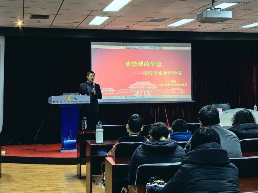 1月21日,天文馆“大火星”志愿服务队(以下简称“服务队”)成功举办2024年度首场科普志愿系列讲座。本次讲座特别邀请故宫博物院宣传教育部副主任高希作《紫禁城的学堂——明清皇家教育举要》主题讲座,天文馆科普工作者、服务队科普志愿者约50人参加。