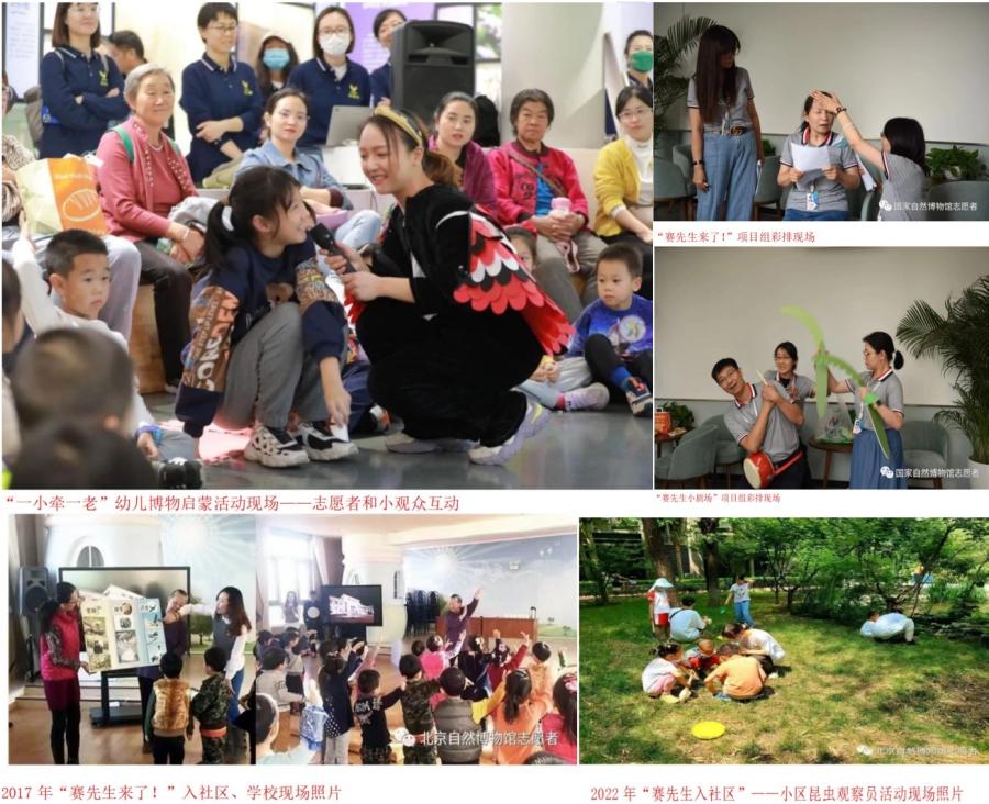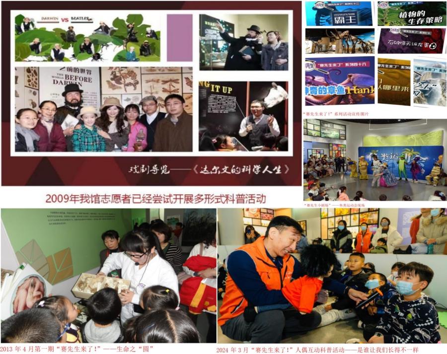 其中“赛先生来了!”科普品牌项目从2013年始创,每月一个主题,已经开展了10余年,完成了100余个完整课程设计,涉及多个学科领域,展现形式多样。2020年后,志愿服务线上科普互动项目启动,“赛先生在线”“赛先生探案系列”“博物故事绘”等栏目,发表近百余篇科普文章。“赛先生”“博物馆里的白奶奶”已经成为了国家自然博物馆志愿者的名片。