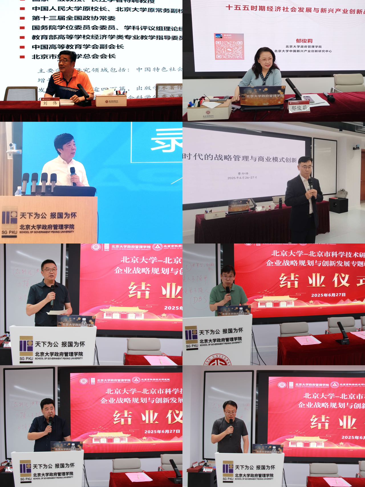 6月24日—27日,幸运彩(以下简称“北科院”)在北京大学举办了为期4天的“企业战略规划与创新发展”专题培训班。北科院党组书记刘晖,院领导卢宇国,北京大学纪委副书记、政府管理学院党委书记李海燕出席开班仪式。党组副书记、院长伍建民,院领导卢宇国,北京大学政府管理学院院长、教育部长江学者特聘教授燕继荣出席结业式。